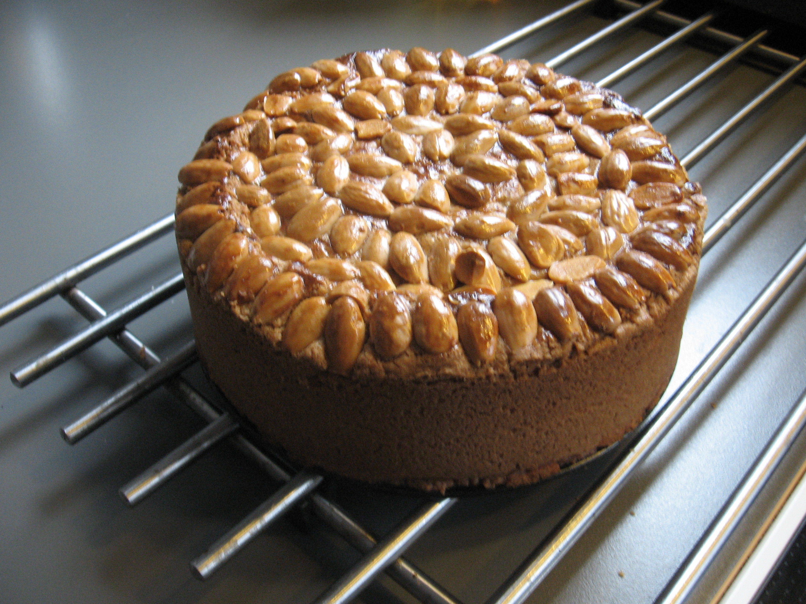 De deksel wordt bestreken met de helft van het restje losgeklopt ei en daarna wordt de deksel belegd met garneer amandelen. Die daarna weer met laatste ei bestreken worden. Daarna op 180 graden gebakken gedurende 50 à 55 minuten.